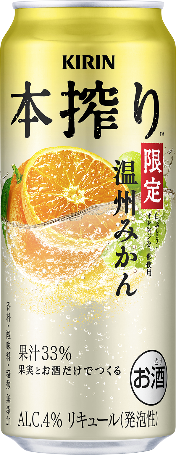 今回発売する「キリン 本搾りTMチューハイ 温州みかん<季節厳選>」は、旬の温州みかんを丸ごと搾った、甘みと酸味のバランスがとれた味わいです。満足感がありながら、すっきりと楽しめる、冬にぴったりなおいしさの特別な「本搾りTM」です。