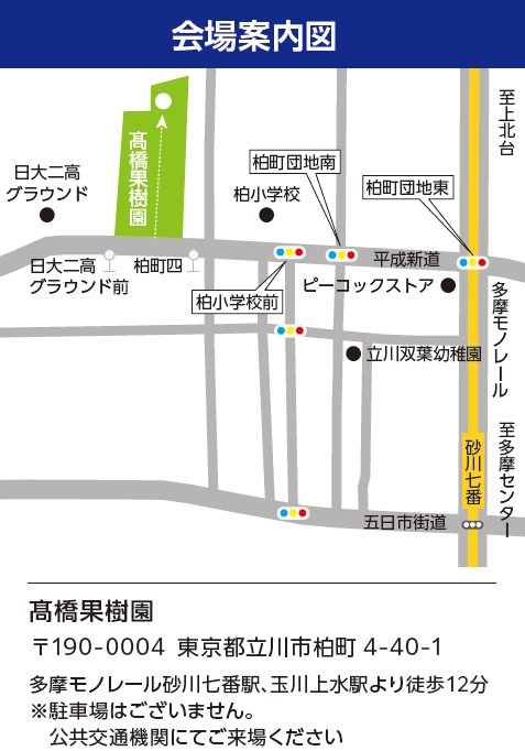 ・会場 :髙橋果樹園(〒190-0004 東京都立川市柏町4-40-1)