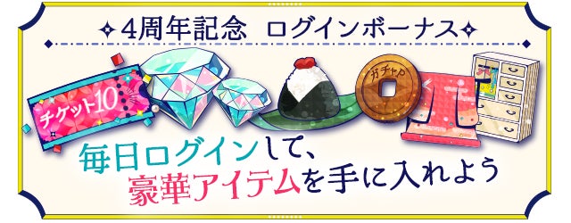 アプリ内にて4周年を記念したログインボーナスを実施いたします。