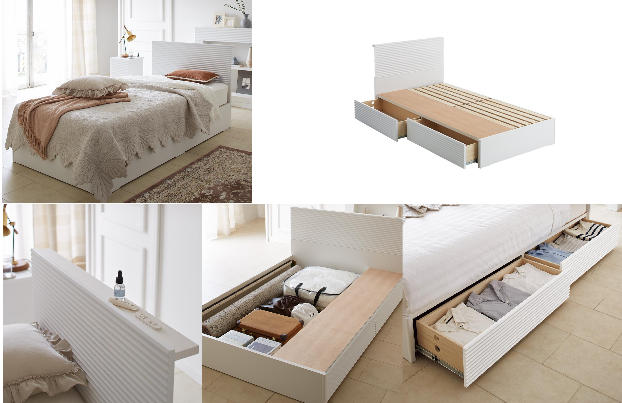Venlo Style ベッドシリーズ(シングル~ダブル① ベッドフレームのみ ②圧縮ポケットコイルマットレス付き ③ 国産両面仕様ポケットコイルマットレス付き ④ ナイトチェスト幅30・40 ⑤ マントルピース)