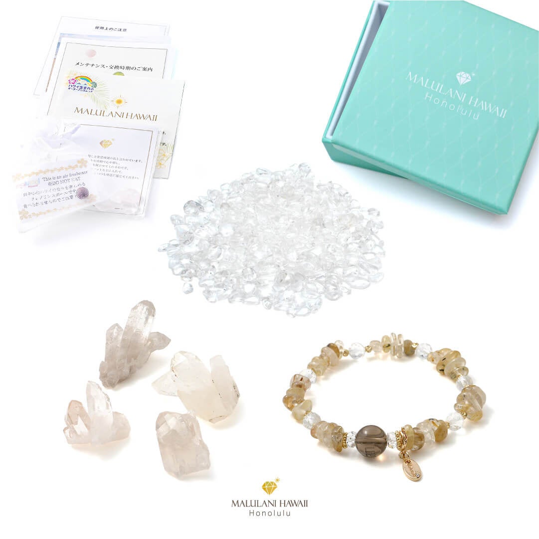 ハワイ発祥の天然石アクセサリーブランド「マルラニハワイ」より、必要を引き寄せ、輝かしい人生へ導くと伝えられる「ルチルクォーツ」を使用したブレスレットと、アメリカ産の水晶クラスター原石、水晶チップがセットになった、2025年開運「金運と厄除けの浄化パック」を発売開始いたしました。