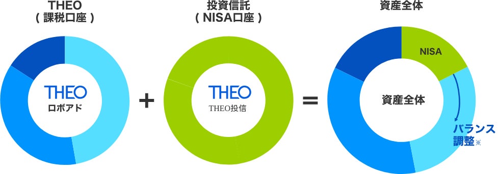 当社は、2025年2月からお金のデザイン社にアカウントアグリゲーション基盤を提供し、これにより『THEO』内のマイページで資産残高・リターンが確認できるようになりました。この度、『THEO』における本基盤を活用した新たな機能として、「NISA調整機能」の提供が開始されます。本新機能は、『THEO』と『THEO投信』をひとつのポートフォリオとしてみなし、資産全体が最適なバランスになるように自動で調整を行うものです。さらに『THEO』のマイページで、『THEO』と『THEO投信』のトータル資産全体・リターンの管理が可能になります。