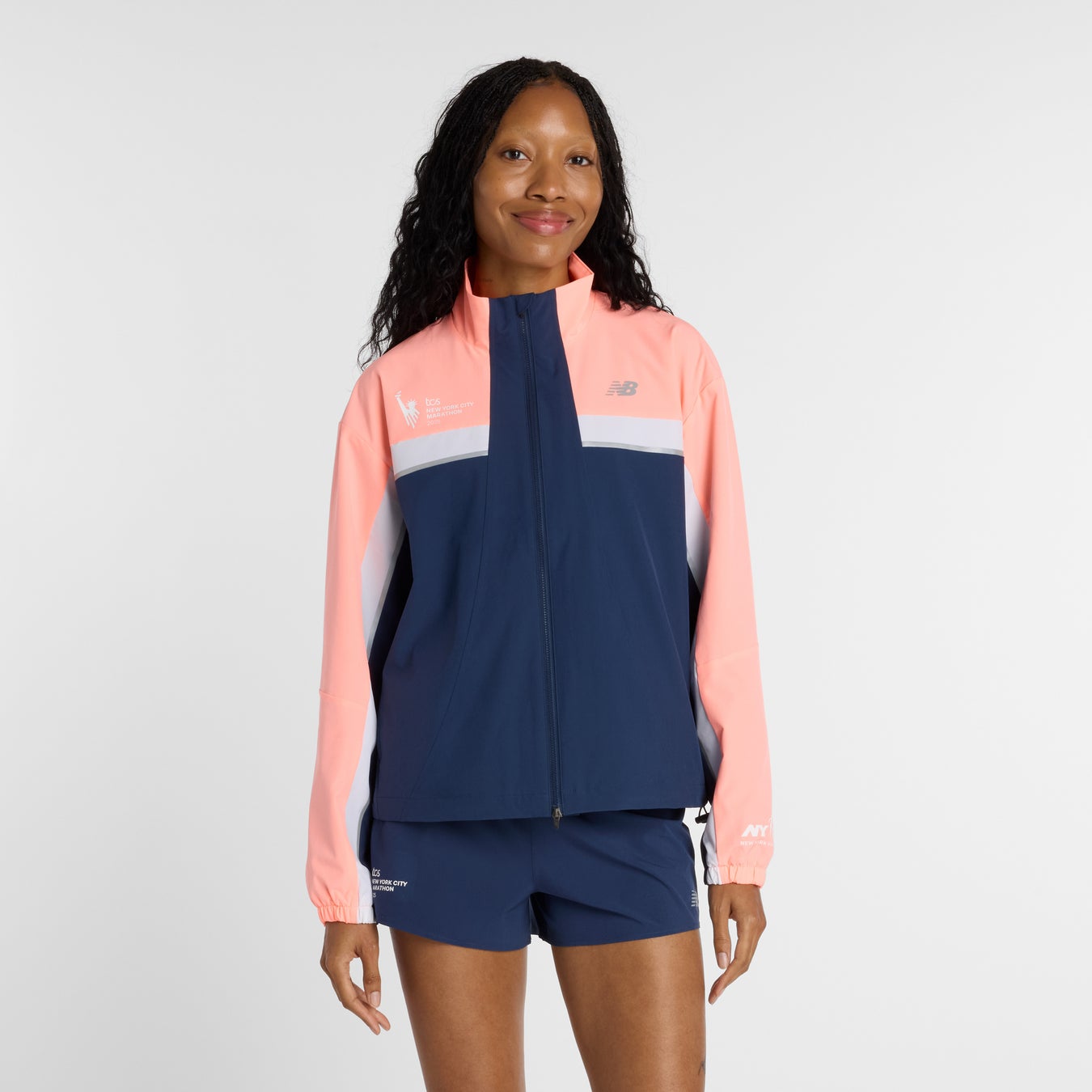 2025年 NYCマラソン大会を記念したウーブンジャケット。リップストップポリエステルを表地に使用し、裏地メッシュを施しました。胸の背中にリフレクティブライン切り替えつきのベンチレーション。裾はアジャスタブルコード、収納に便利なジップ付きハンドポケット。大会オフィシャルグラフィックがプリントされたスペシャルアイテムです。