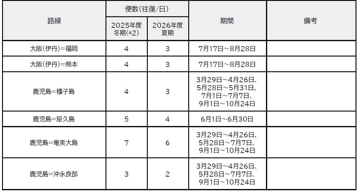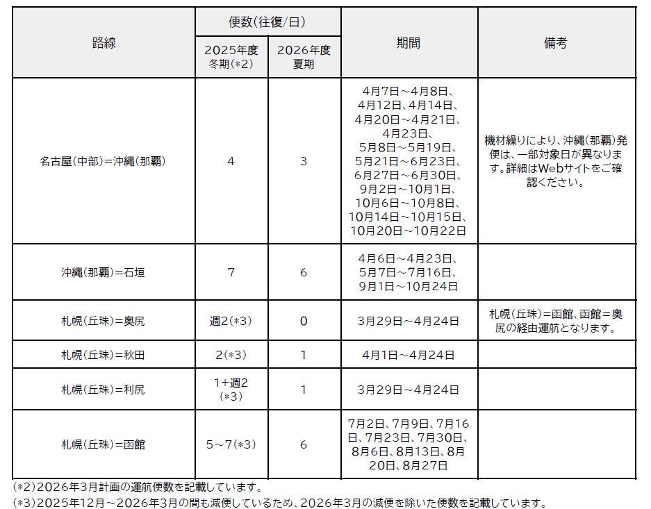 2026年度 JALグループ路線便数計画(国内)を決定