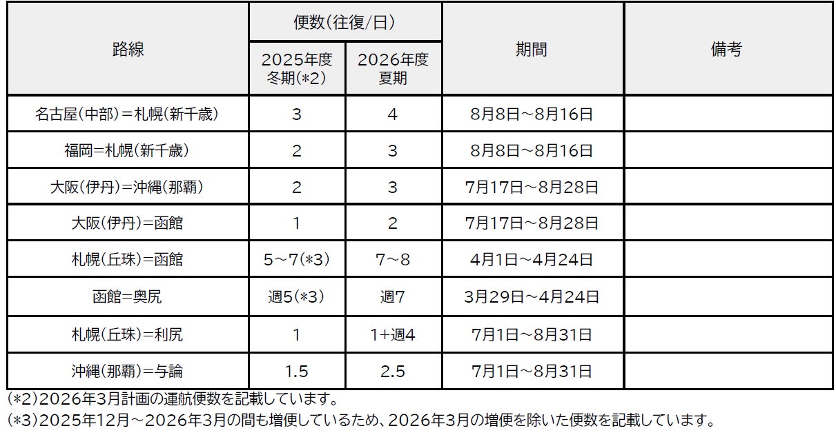 JALグループは、2026年度の路線便数計画(国内)を決定しました。なお、国際線の路線便数計画については、決定次第お知らせします。