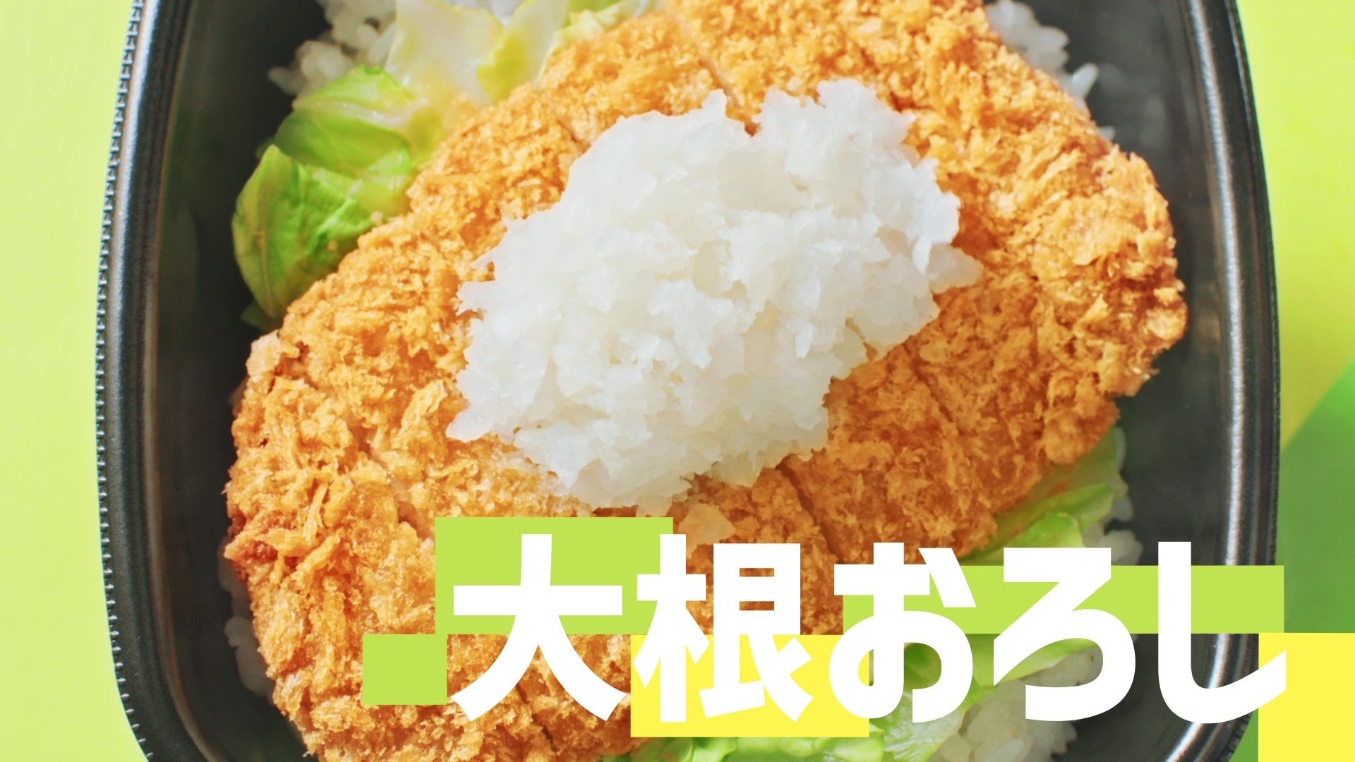 柔らかなとんかつにたっぷりの大根おろしを添えることで、ボリューム満点ながらもさっぱりと味わえる『おろしかつめし(丼タイプ)』の美味しさを爽やかに表現しました。とんかつと大根おろしに特製ダレがかかる場面などが見どころです。さらに、春を感じる『たけのこごはん』も登場します。