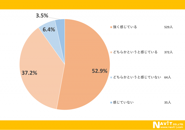電気・ガス料金の値上げに関して危機感を「感じている」という人は52.9%と半数以上になりました。また「どちらかというと感じている」という人が37.2%いますので、合計で90.1%の人が危機感を感じているという結果になりました。