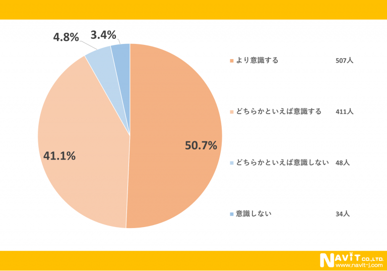 電気やガスの節約を「意識する」と回答された人が50.7%で「どちらかというと意識する」と回答された人が41.1%となっています。