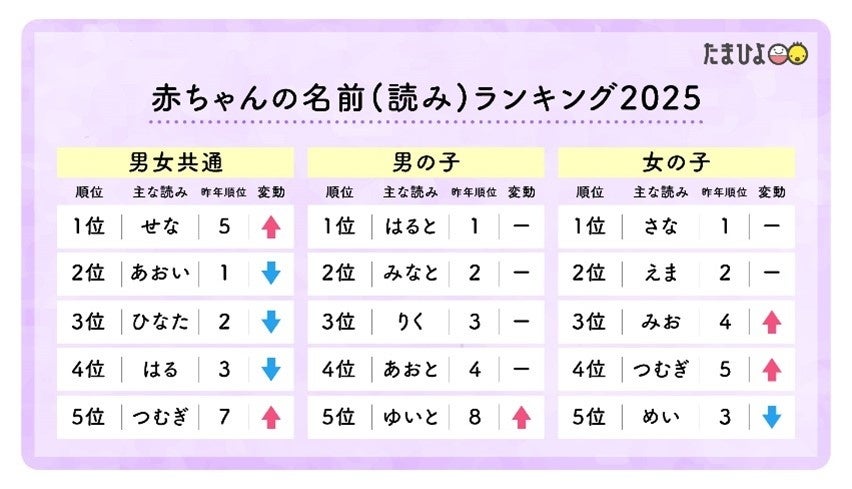 [国内最多16.6万人調査]たまひよ 赤ちゃんの名前ランキング2025 女の子「翠」が初の1位、男の子「碧」が2年連続1位!