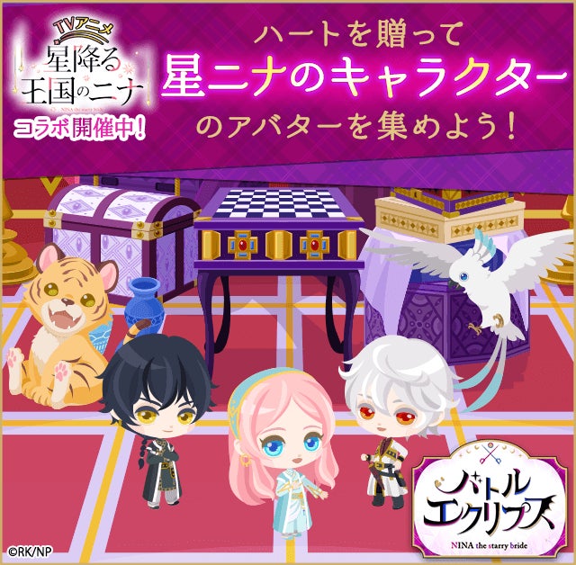 「バトルエクリプス~NINA the starry bride~」は本編ストーリーを読み進めてハートを集めると、限定アバターを手に入れることができるキャンペーンです。