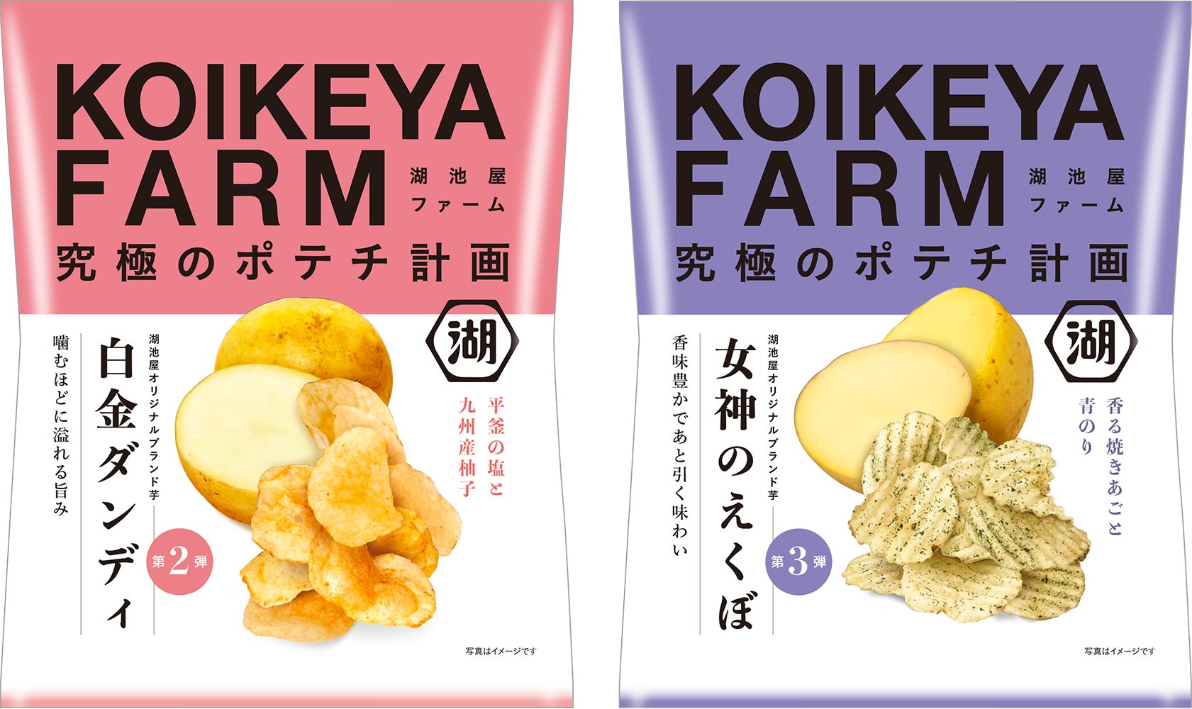 株式会社湖池屋(社長:佐藤章)は、湖池屋オリジナルのブランド芋を日本の土壌で育て、究極のおいしさの実現を目指す究極のポテチ計画「KOIKEYA FARM」より、「KOIKEYA FARM 白金ダンディ 平釜の塩と九州産柚子」、「KOIKEYA FARM 女神のえくぼ 香る焼きあごと青のり」を2024年8月5日(月)に全国スーパーマーケット他一般チャネルで発売します。さらに、湖池屋が自信を持ってお届けする当商品を一足早く手に入れられる機会として、2024年7月25日(木)より、湖池屋オンラインショップにて数量限定で先行販売を開始します。