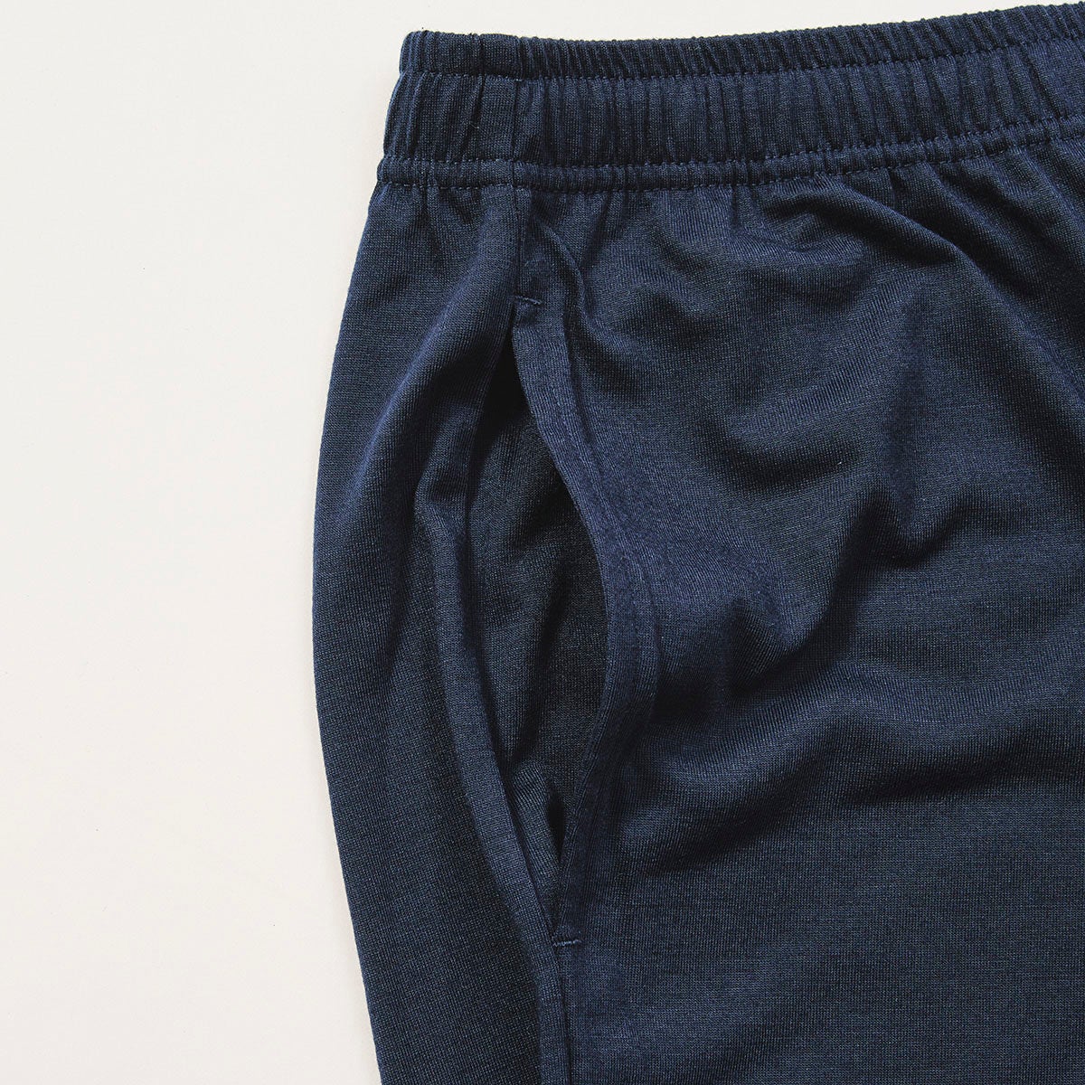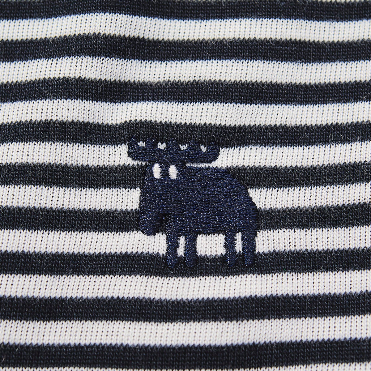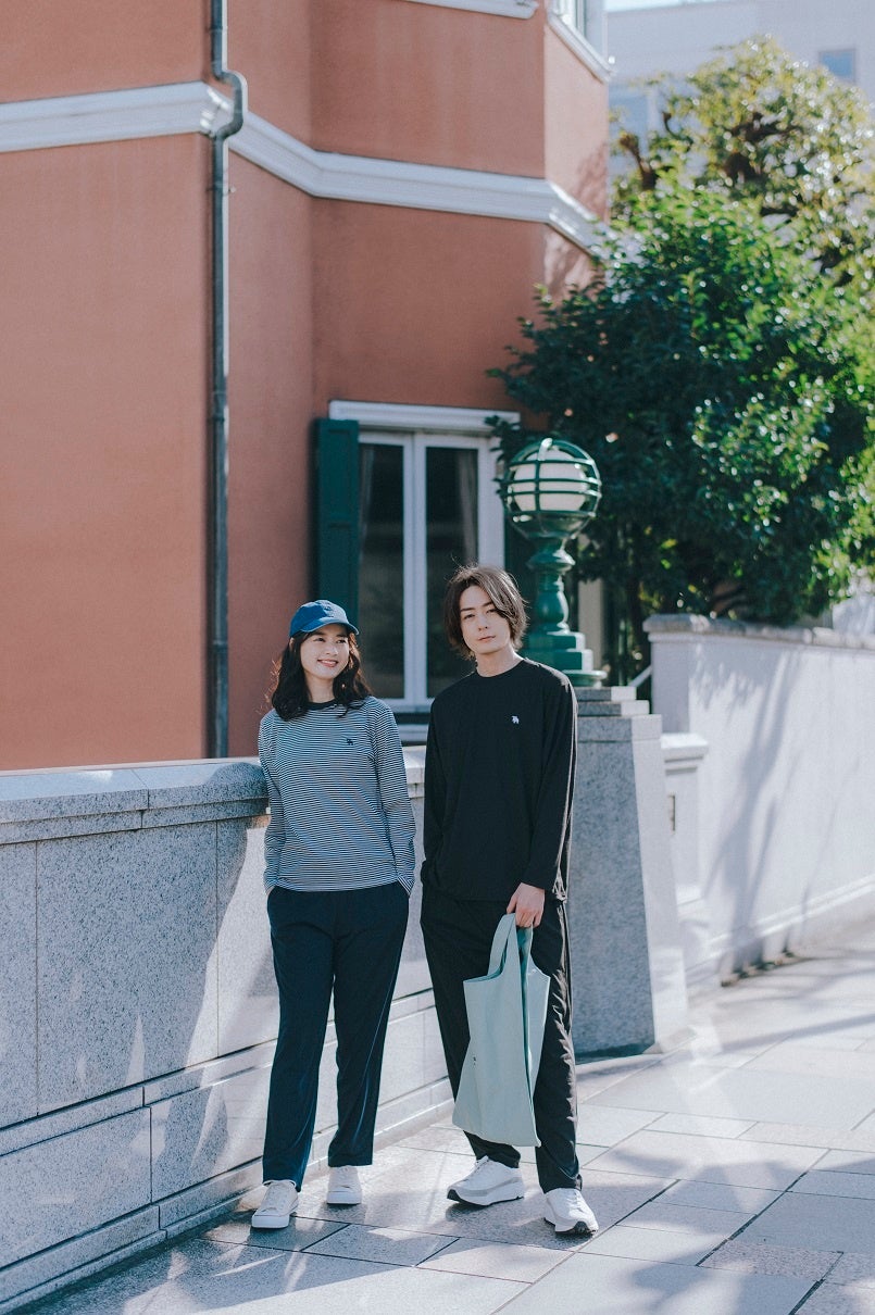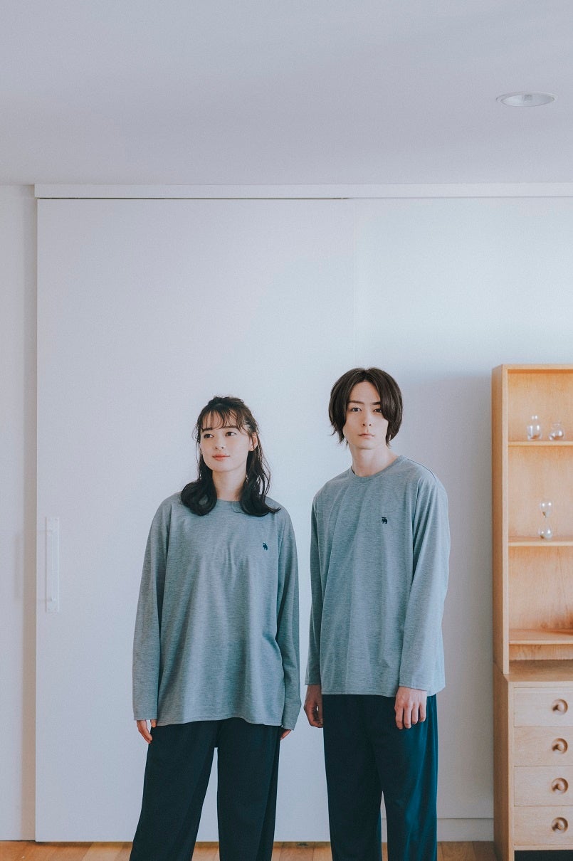 “汗をすばやく吸収してすぐに乾く” 吸水速乾生地を使用し、ベタつきにくくサラサラとしているので、暖かく、汗ばむ季節も気持ちよく過ごせます。カラーはブラック、グレー×ネイビーに加え、シリーズで 初めてボーダー柄が登場。トップスの胸元にブランドのアイコン、エルクの刺しゅうをあしらったシンプル なデザインで、家だけでなく、散歩やちょっとした買い物にも着られる“ワンマイルウェア”です。