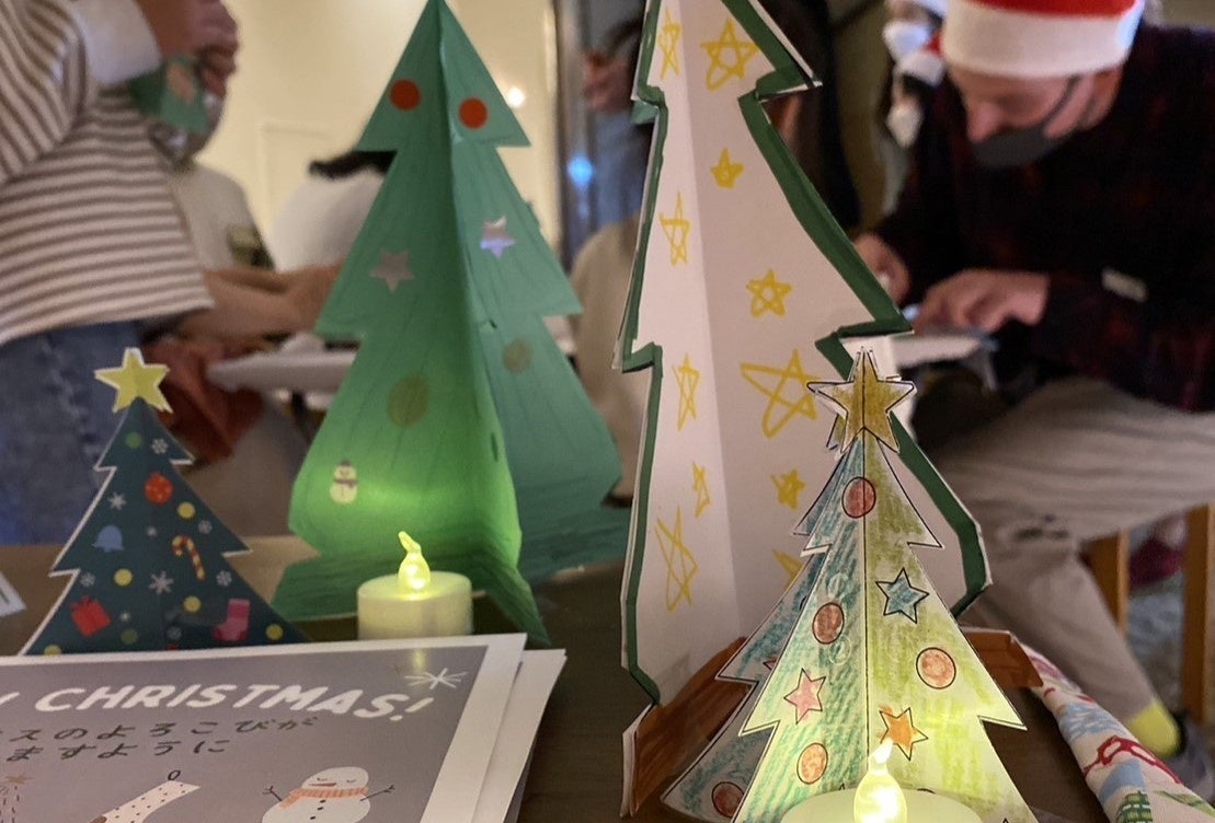 ツリーの型紙にシールを貼ったり、色を塗ったりし、お好きな飾りつけでオリジナルのクリスマスツリーを作ります。完成したツリーはお持ち帰りいただけますので、ご自宅で飾ることはもちろん、お友達やご家族へのプレゼントにすることもできます。