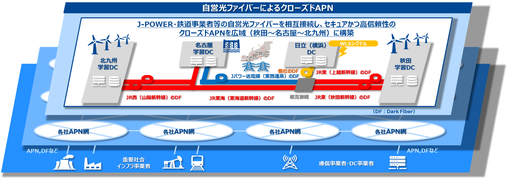 電源開発株式会社(以下、Jパワー)、株式会社日立製作所(以下、日立)、シスコシステムズ合同会社(以下、シスコ)、株式会社ビットメディア(以下、ビットメディア)、東日本旅客鉄道株式会社(以下、JR東日本)、JR西日本光ネットワーク株式会社(以下、JR西光ネットワーク)、名古屋鉄道株式会社(以下、名古屋鉄道)は、AI用データセンター(以下、AI-DC)のワークロードシフト(以下、WLS)*1及び広域オール光ネットワーク(以下、広域APN) *2構築に係る技術実証に向けた共同検討(以下、本検討)を開始します。本検討にあたり、基本合意書(Memorandum of Understanding/以下、本MOU)を締結し、MOU締結当事者により構成される「広域APN・ワークロードシフト イノベーション推進協議会」を設立しました。