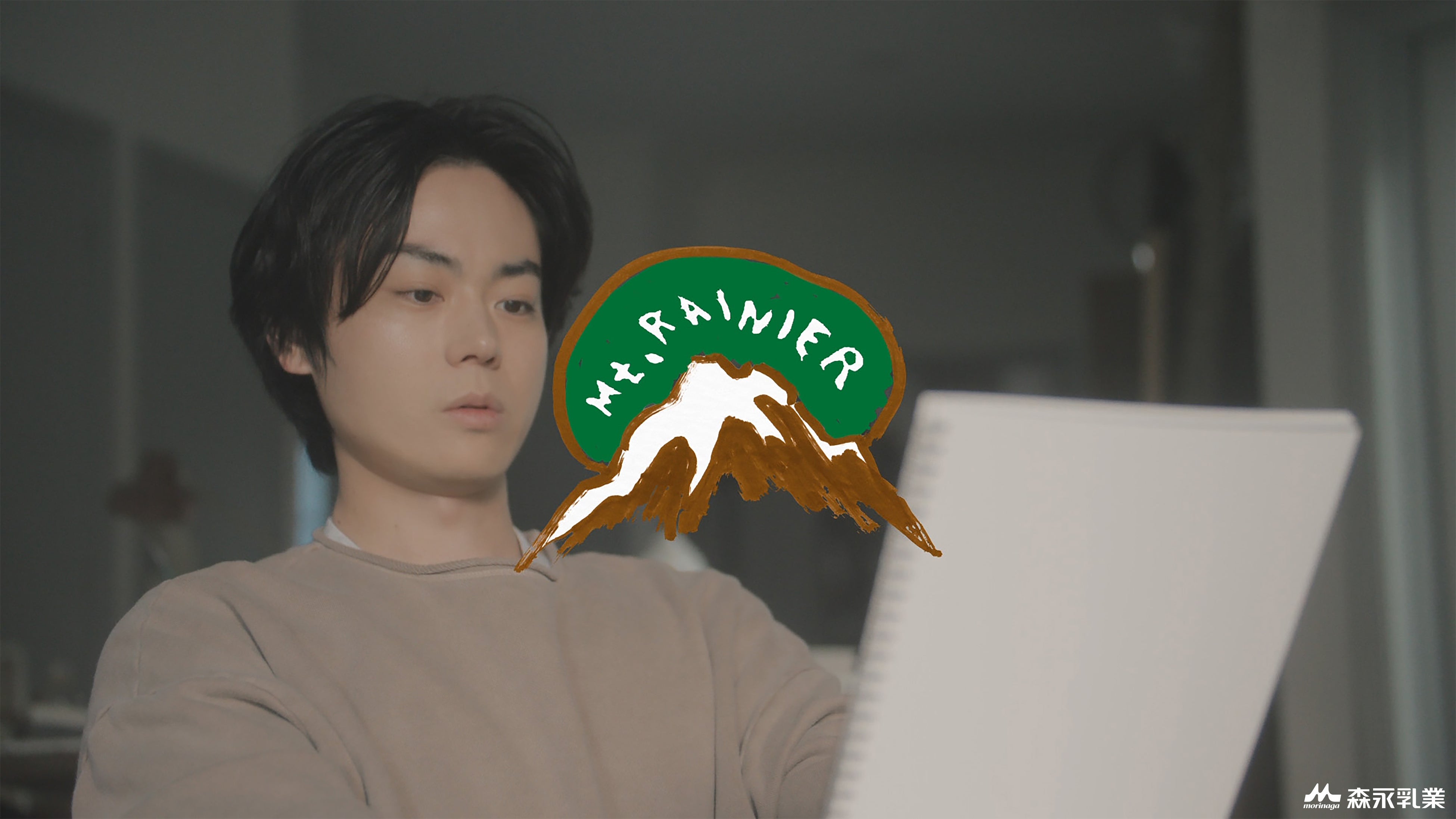菅田さん 「撮影した感じがしないぐらい自然と溶け込むというか、うろ覚えでマウントレーニアのパッケージをただただ描くという、すごくまったりした撮影で楽しかったです」