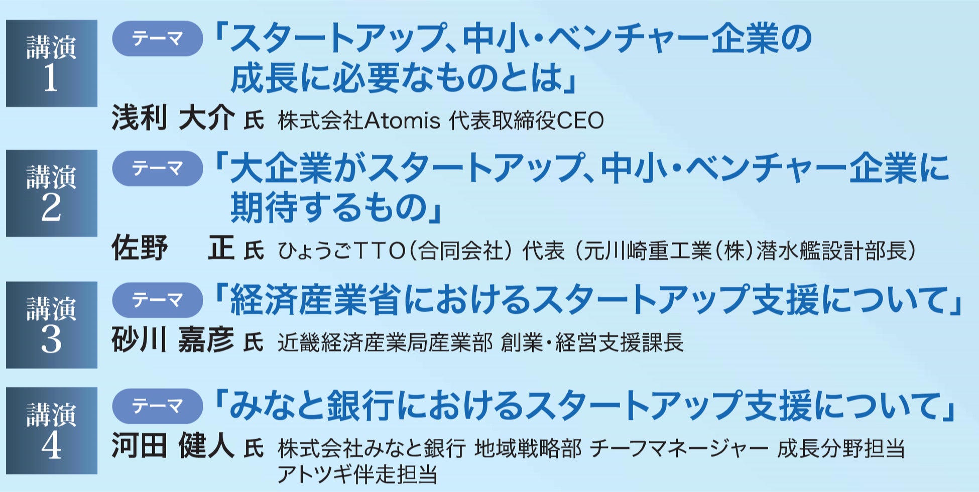 スタートアップ企業等が成長するためには、資金調達や販路拡大、人材の確保に至るまで様々な課題を解決することが必要となります。当イベントでは、京都大学発スタートアップ企業で成長を続ける株式会社Atomisの浅利大介代表取締役CEOをお招きし、その成長の秘訣を探求します。
