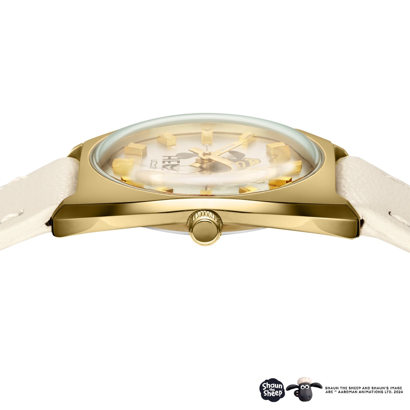 Point1 文字盤の中央には横になってリラックスするショーンの姿をオン。時間を確認するたび癒されるデザインです。