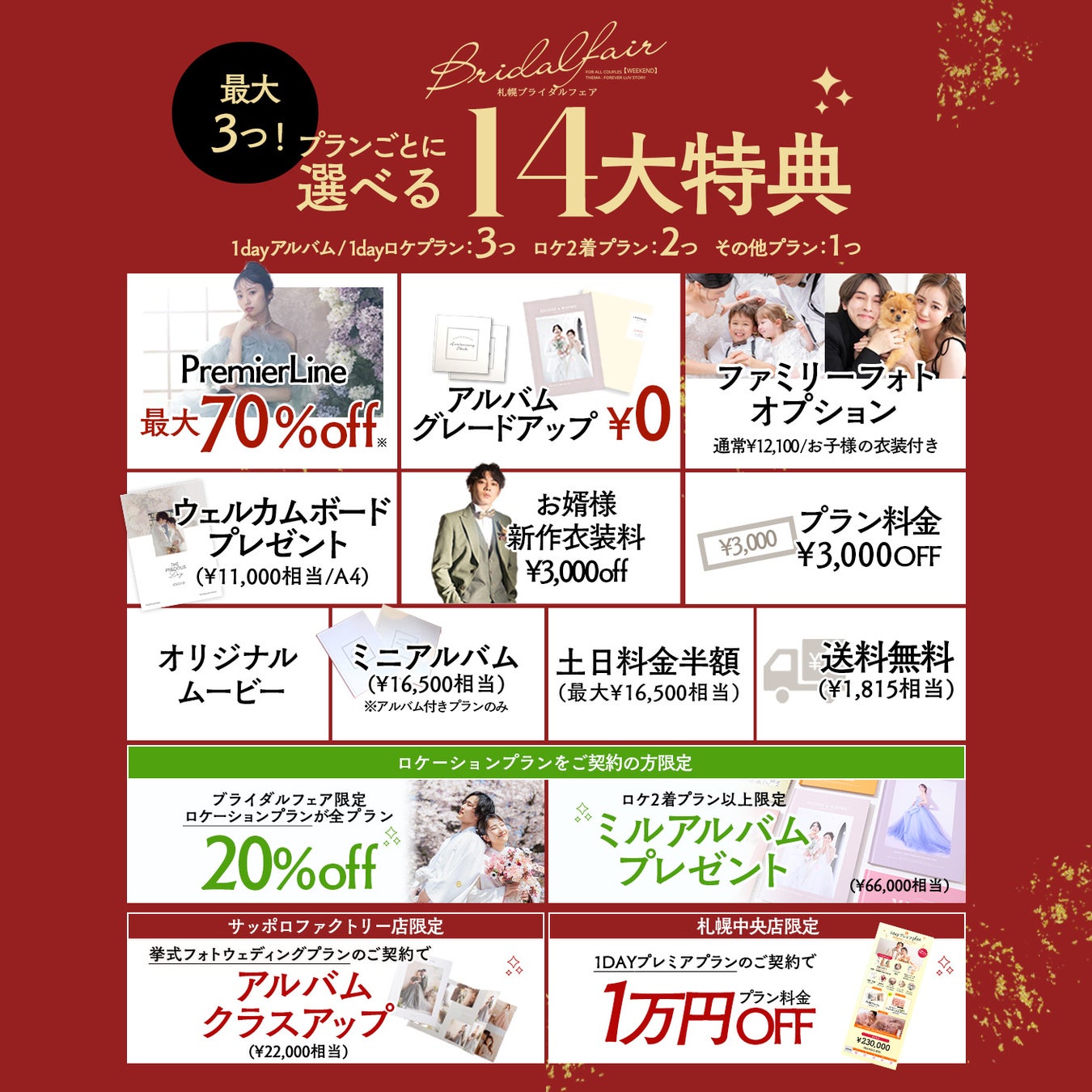 内容: 最新衣装展示・無料試着会、スタジオツアー、個別相談会、フェア限定特典の進呈