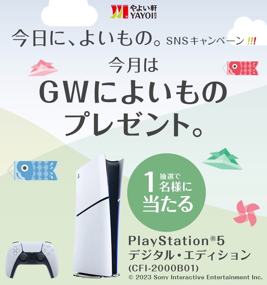 日本国内の「やよい軒」では、やよい軒公式X・公式Instagramにおいて、毎月『今日に、よいもの。』キャンペーンを実施しております。4月と5月は『ゴールデンウィークによいもの』をプレゼント!毎月催事に合わせたプレゼントをご用意しておりますので、ぜひ、この機会にキャンペーンにご参加ください。