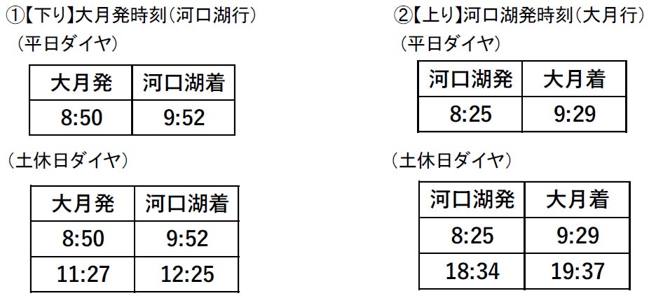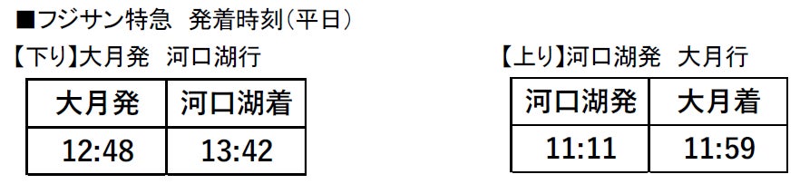 今回の改正では、ご利用状況を鑑みフジサン特急が平日ダイヤにおいて運転を再開する他、普通電車の増便を行うことで、富士五湖エリアへのアクセスおよび利便性の向上を図ります。