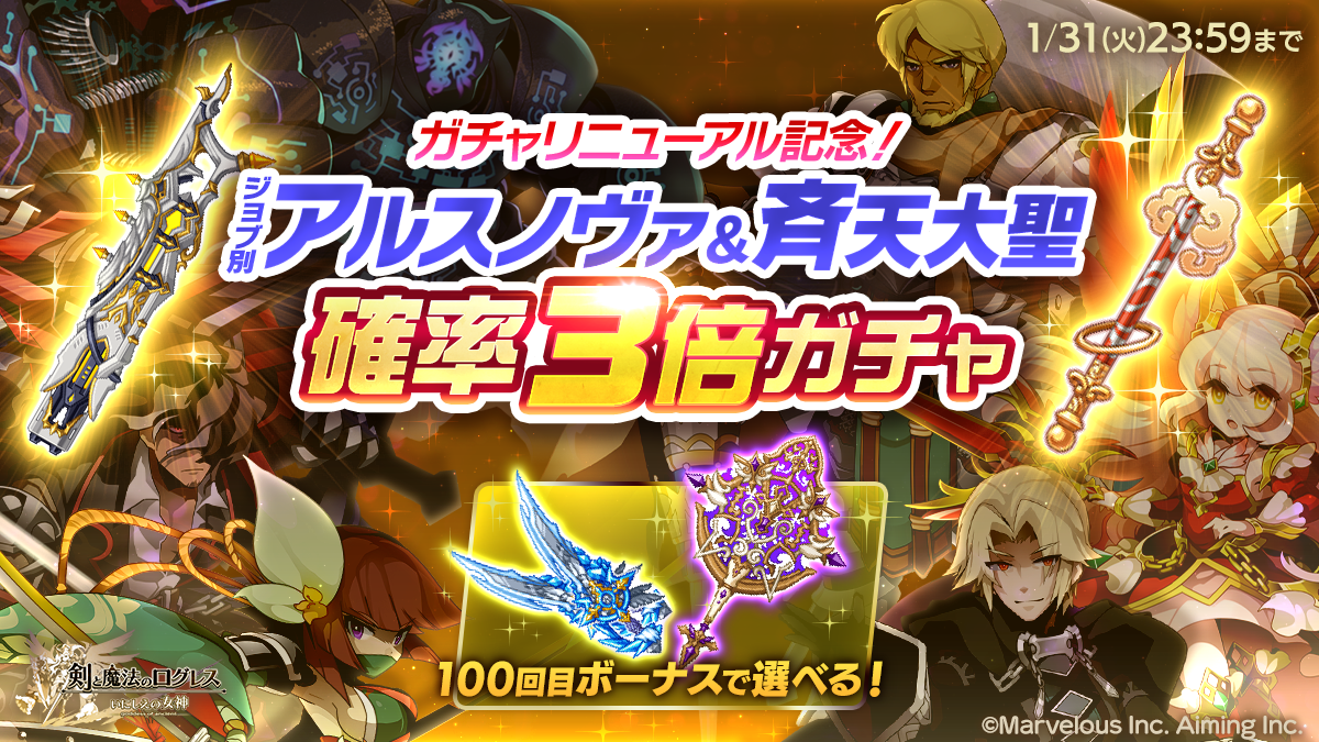 株式会社マーベラス(代表取締役社長:佐藤 澄宣/所在地:東京都品川区)は、スマートフォン向け本格オンラインRPG『剣と魔法のログレス いにしえの女神』において、2023/1/25(水)に「ジョブ別 アルスノヴァ&斉天大聖確率3倍ガチャ」の販売、および新イベント「反逆アデル戦記」の開催を含むアップデートを行ったことをお知らせいたします。