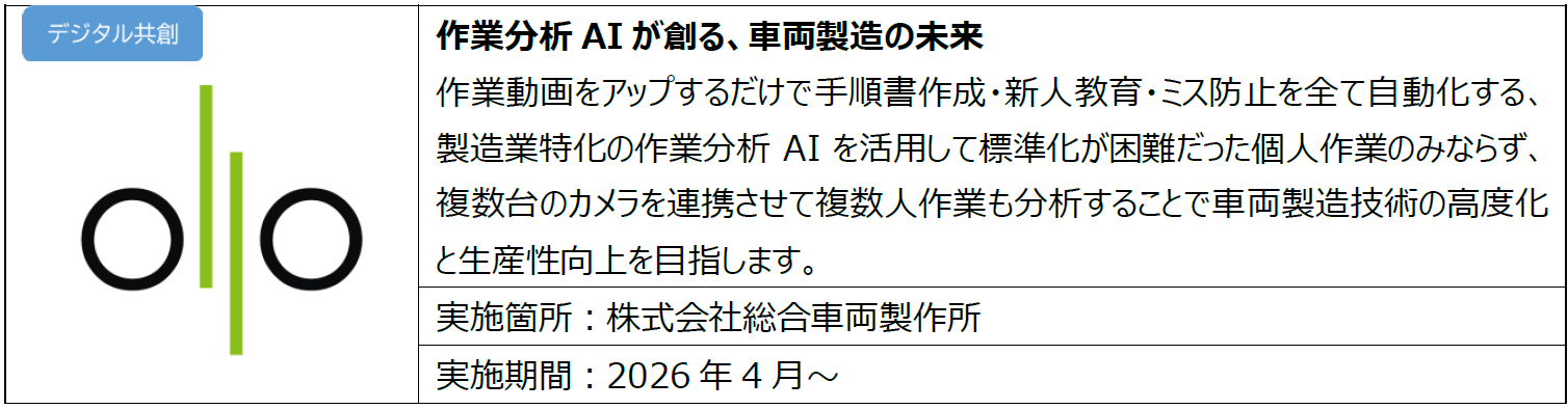 エスイノベーション株式会社、 株式会社Ollo(オロ)、 株式会社Kailas(カイラス) Robotics(ロボティクス)、 株式会社Thinker(シンカー)、株式会社スマートシティ技術研究所、 Muso(ムソウ) Action(アクション)株式会社、 株式会社ECOMMIT(エコミット)