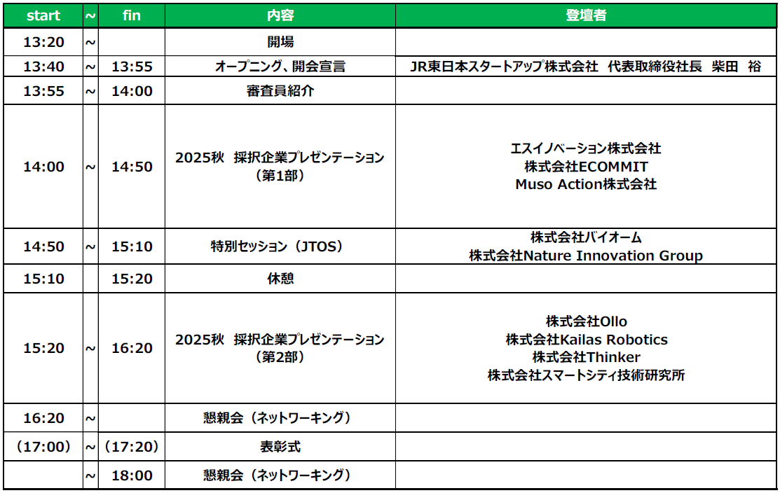 1.JR東日本スタートアッププログラム2025秋の採択企業について