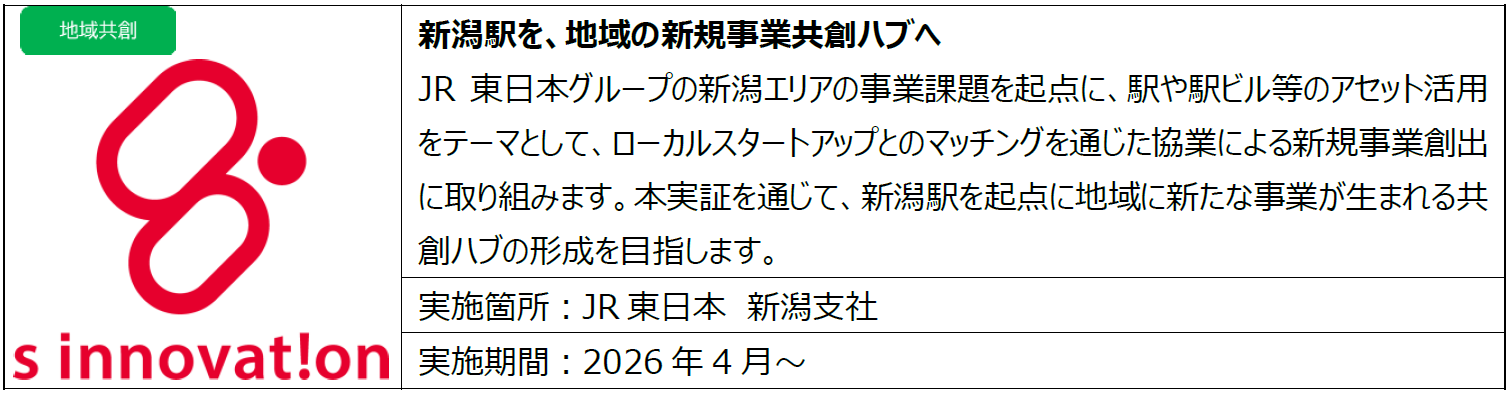 ○東日本旅客鉄道株式会社(代表取締役社長:喜㔟 陽一、以下「JR東日本」)とJR東日本スタートアップ株式会社(代表取締役社長:柴田 裕)は、ベンチャー企業や優れた事業アイデアを有する方々との協業によるビジネス創造活動 「JR東日本スタートアッププログラム」を2017年から進めてきました。