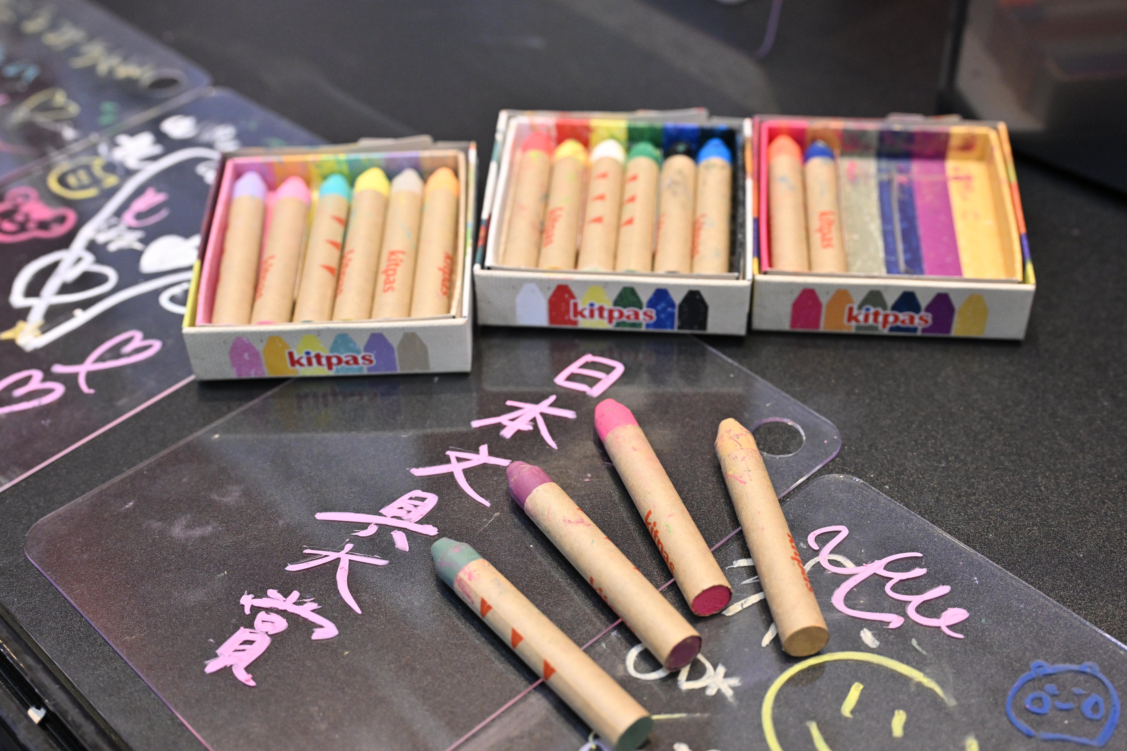 「キットパス バイ アーティスト(エクル)」はお米を精米した米ぬかのワックスを主原料とした、安心・安全な筆記具。窓やガラスなどつるつるしたところになめらかに発色良く描け、濡れた布で消すことのできる"サステナブルな一面"を持ち合わせています。お子さまのおえかき、学校、お店、オフィスなど、アイデア次第で使い方が無限大!