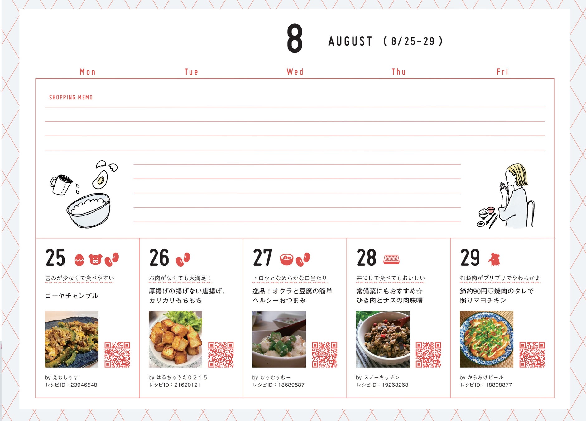 巻末特別付録は、毎日使える【3か月おかずカレンダー】