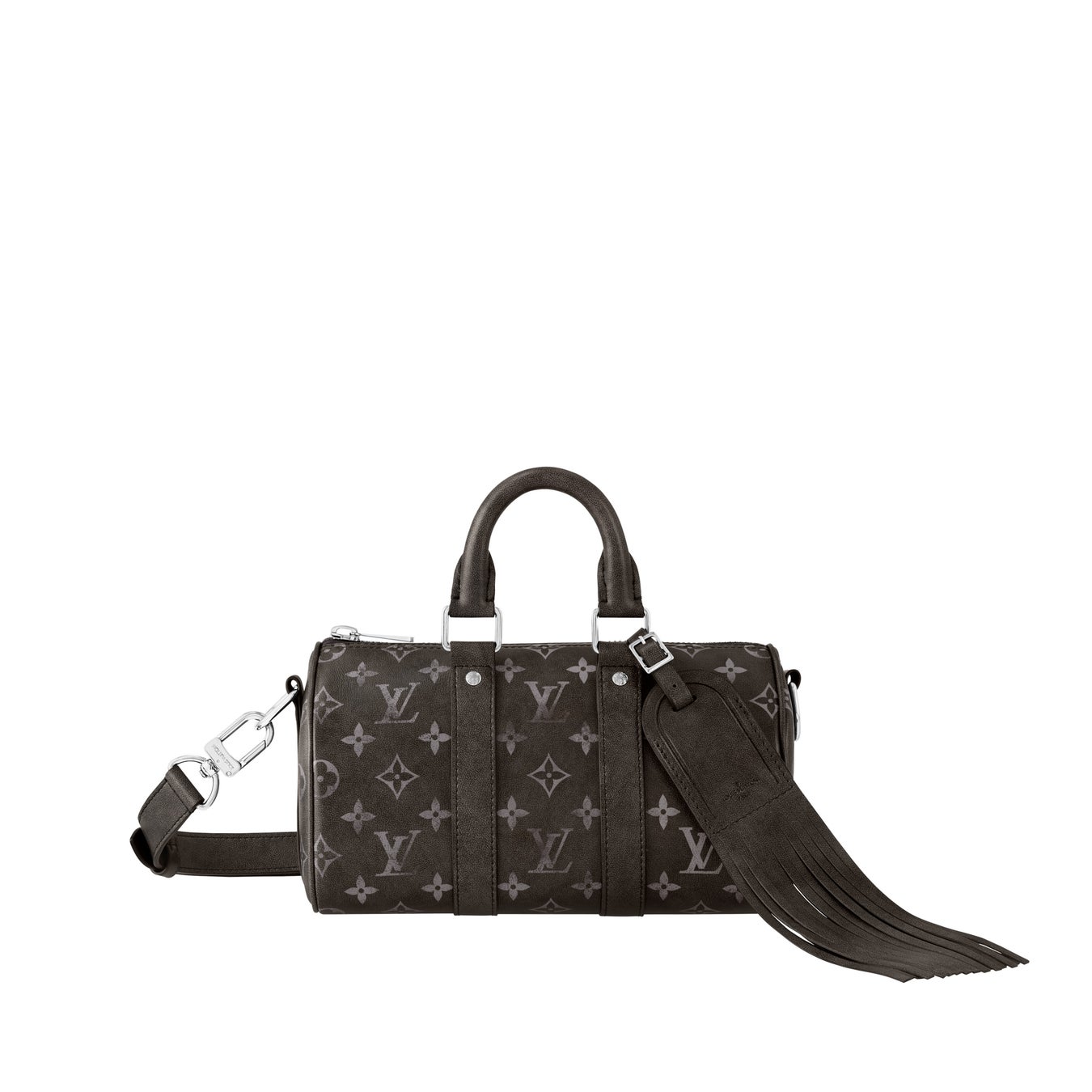 「キーポル·バンドリエール 25」は、プロのカウボーイの使い古したようなレザーサドルを彷彿させる、色褪せたモノグラム·パターンが特徴です。2024秋冬コレクションでファレル·ウィリアムスが掲げた「パリからバージニアへ」のテーマにふさわしく、装飾的なロングフリンジを添えた独特のレザーのネームタグをあしらいました。
