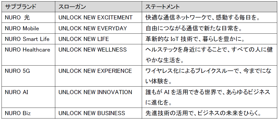 「NURO」では、7つのサブブランドを構成して多様なサービスを提供しています。