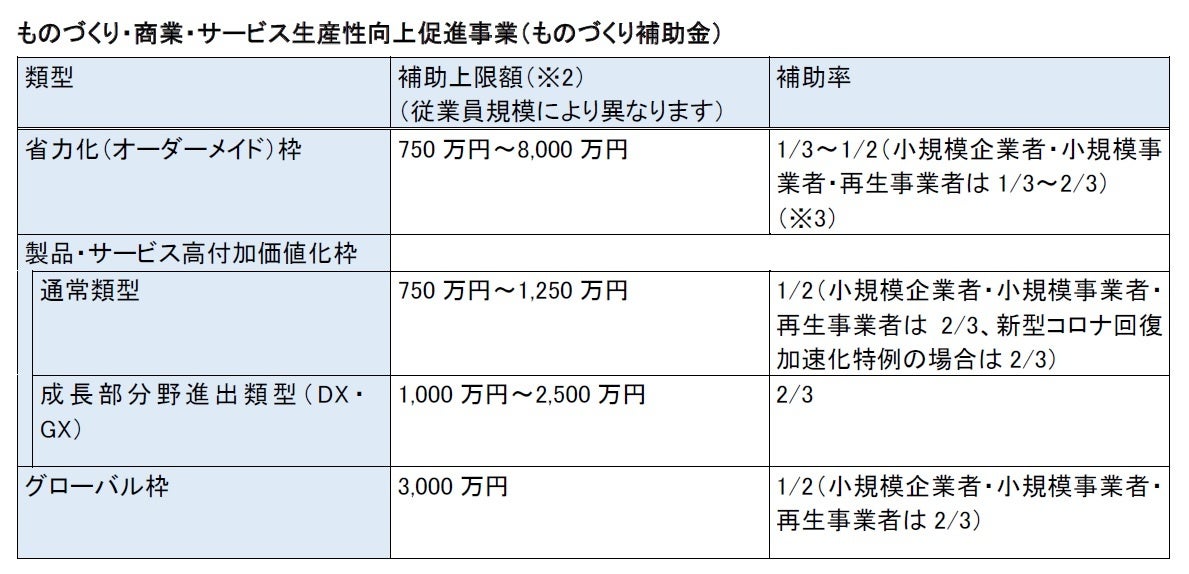 ※3 補助金額が1,500万円までは1/2もしくは2/3、1,500万円を超える部分は1/3となります。