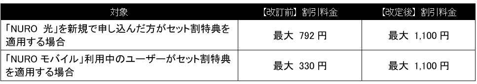 「NURO 光 セット割特典」概要