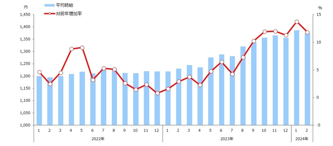 2024年2月度 アルバイト平均時給調査 全国の平均時給は1,375円