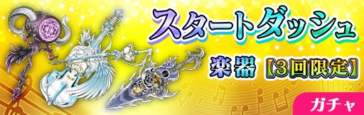 ・内容:新規でゲームを開始された方に、ゲーム開始から72時間限定でキャラクター、楽器のスタートダッシュガチャをご利用いただけます。