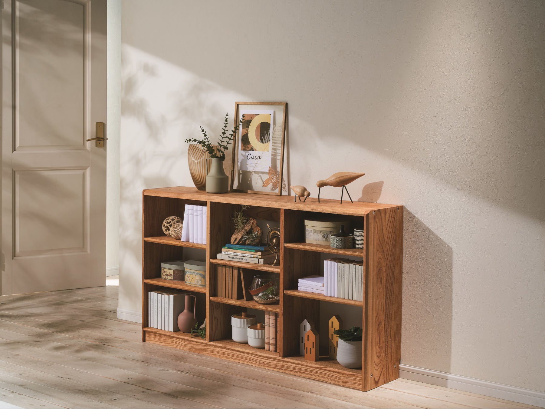 センダンは、現在天然の自生木しかなく、希少な木材であることから、一般家庭向け家具の量産が難しいとされています。その一方で、樹齢15年から20年と早期に伐採でき活用が可能なため、植樹を行い活用を進めることで、日本の林業活性化への貢献も期待されています。また、杉やヒノキなどの針葉樹と比較すると十分な強度があって加工しやすいため、家具材に向いています。さらに、成長の早さに比例してCO2の吸収能力が高いため、CO2削減にも寄与すると言われています。そんなセンダンを使ったテレビ台とブックラックを今回ラインアップしました。