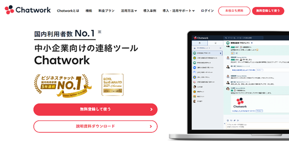 「Chatwork」は、業務の効率化とコミュニケーションの円滑化を目的とした、メール・電話・FAXに代わるビジネスコミュニケーションツールです。これまでに441,000社(2024年3月末時点)に導入されています。