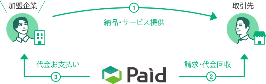 「Paid」を導入することで、加盟企業にとっては請求業務や未入金のリスクがなくなり、取引先企業はキャッシュフローが安定するメリットがあります。決済にかかる負担をなくし、取引だけに集中できる環境を「Paid」は創出しています。