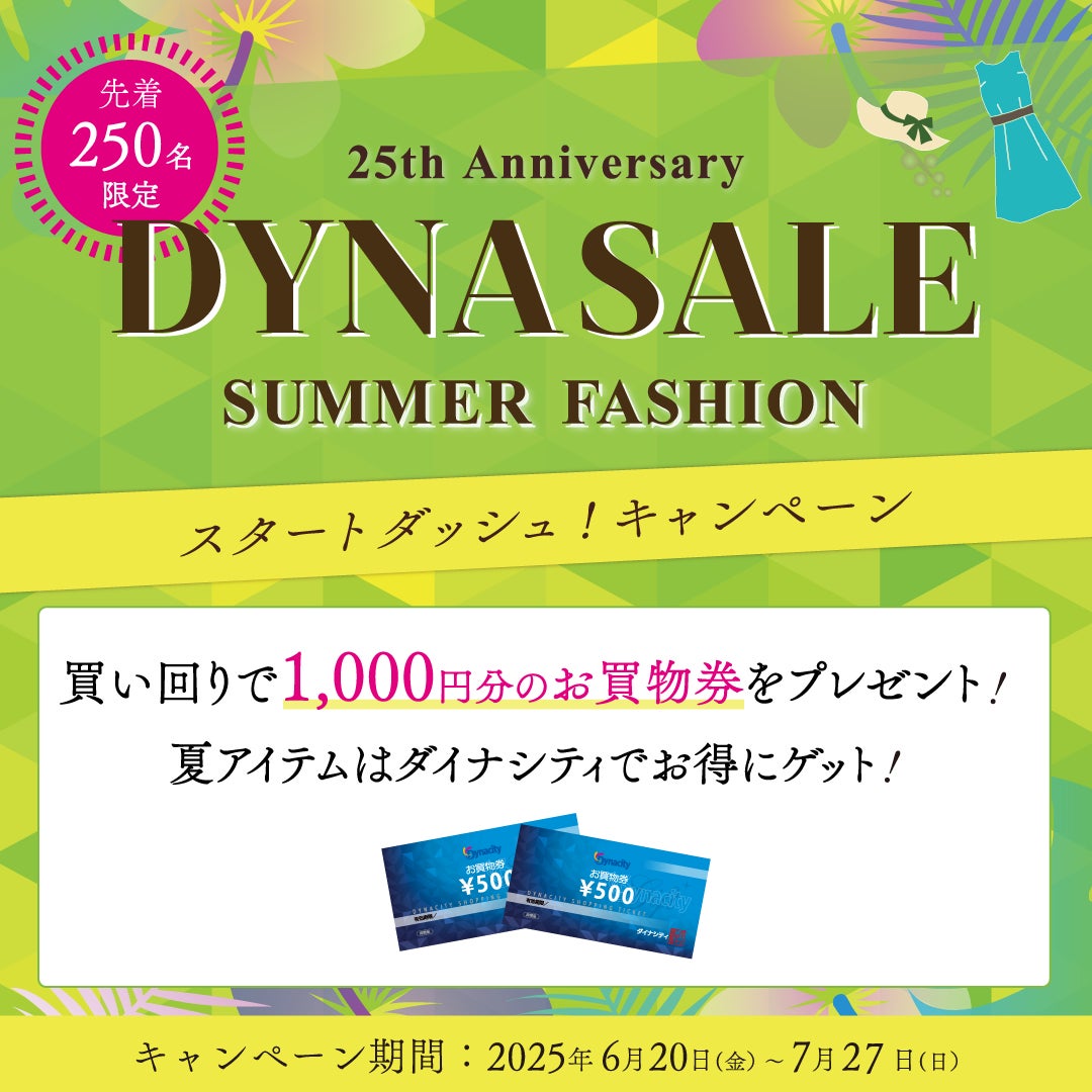 株式会社ダイドーフォワード(本社:東京都千代田区、代表取締役社長:成瀬功一郎)が運営する商業施設ダイナシティは6月20日(金)より全館で「DYNA SALE SUMMER 2025」を開催いたします。