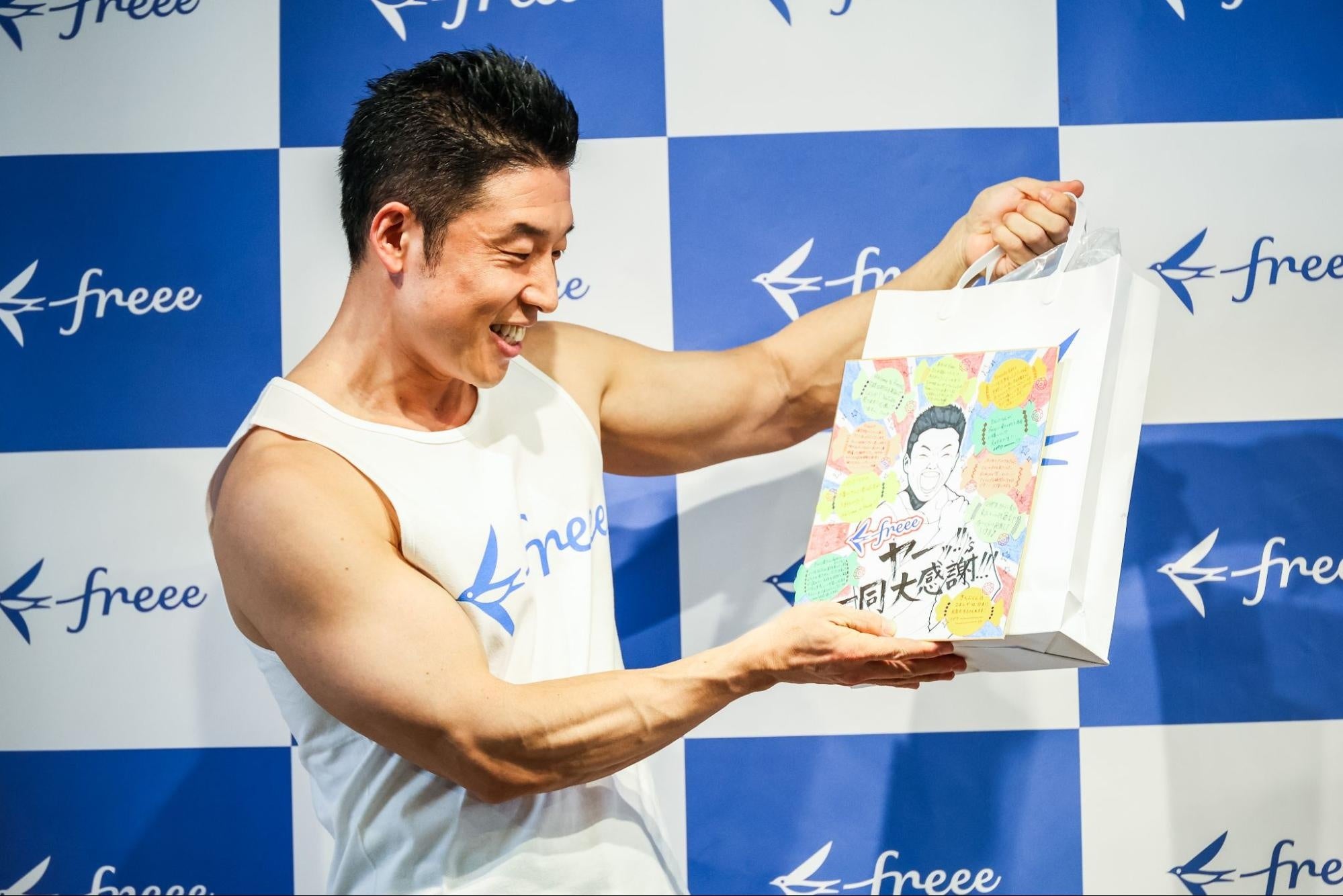 イベントの最後には、freee社員からきんに君氏への寄せ書きとバレンタインのチョコレートをプレゼントし、きんに君氏も喜んでくださいました。きんに君氏が登壇してくださるのを、freee社員一同、大変心待ちにしていました!
