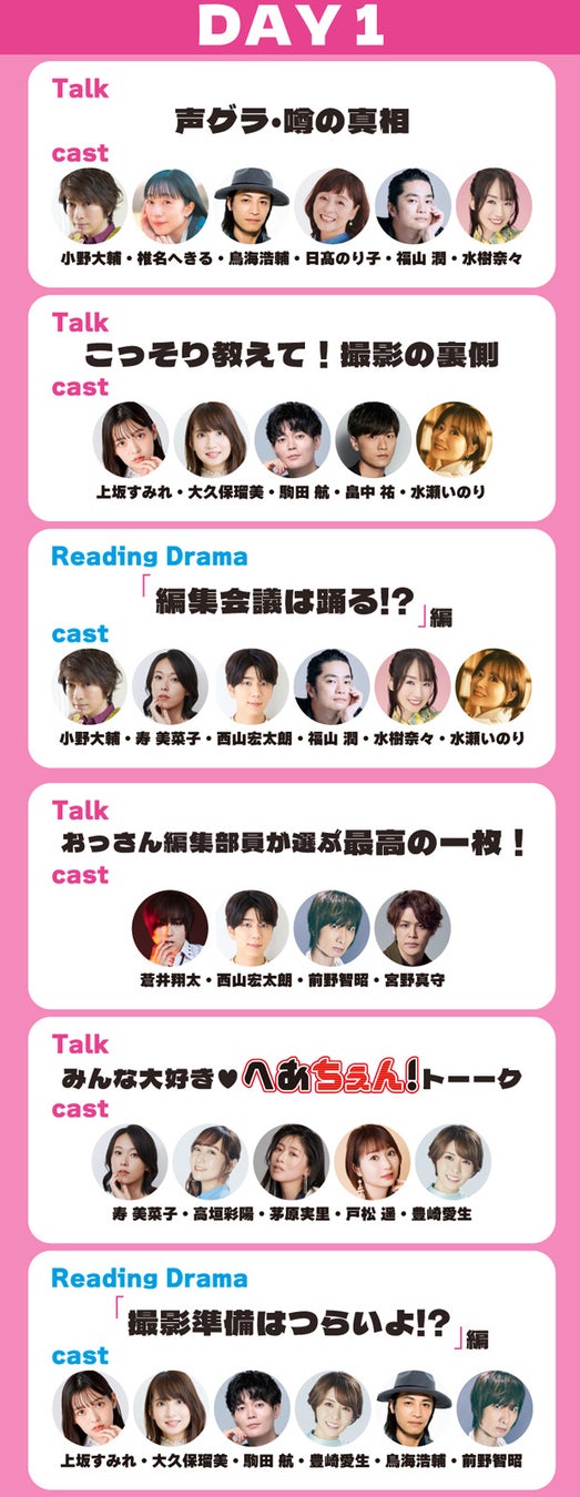 30年に渡って声優の魅力をさまざまな角度から伝え続けてきた「声優グランプリ」が贈る、夢のFES! 超豪華声優陣が繰り広げる軽妙なトークと熱演の朗読パートを、2日分まとめてお得に配信!