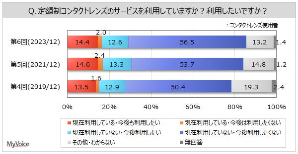 マイボイスコム株式会社(東京都千代田区、代表取締役社長:高井和久)は、6回目となる『コンタクトレンズの利用』に関するインターネット調査を2023年12月1日~5日に実施しました。