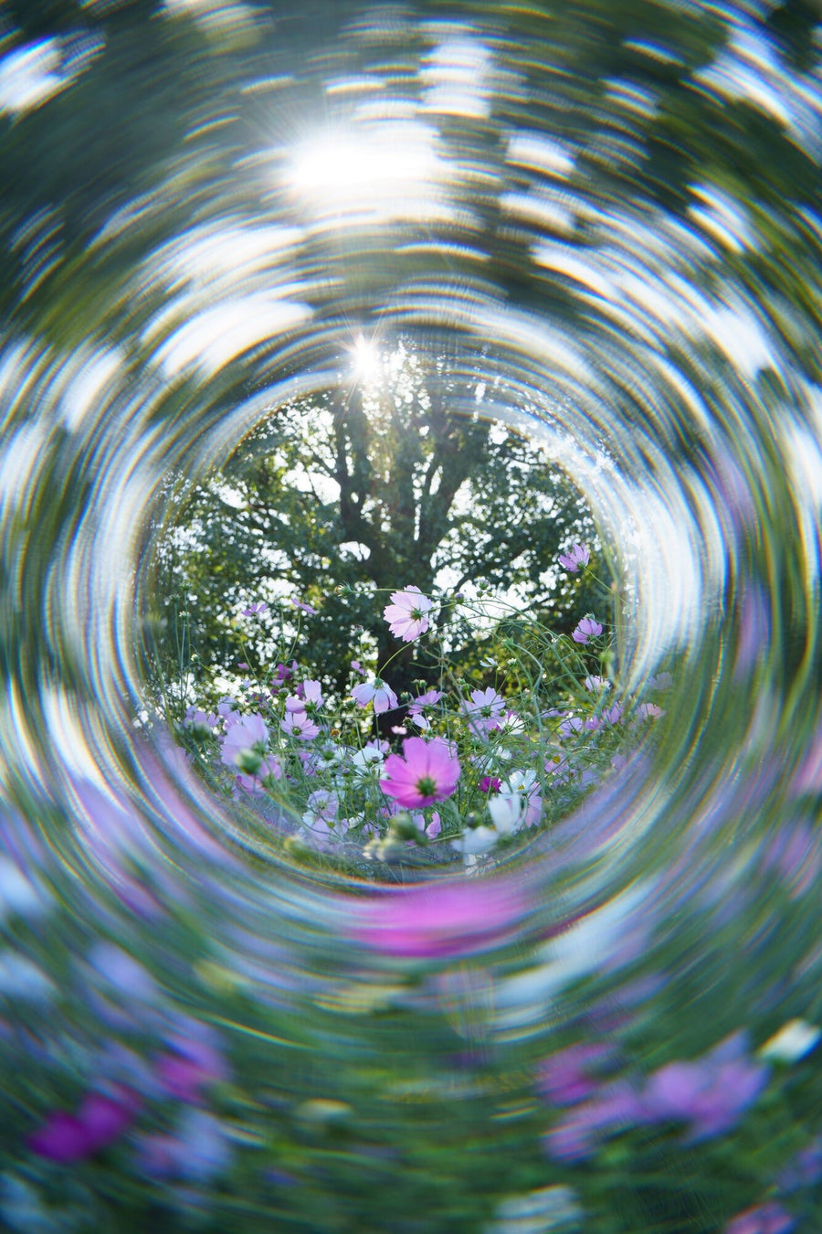 被写体を包み込むような渦巻き状のボケで主役に視線を誘導し、際立たせます。中心部はシャープに写り、中心の被写体が渦状にぼけて周囲に写ります。
