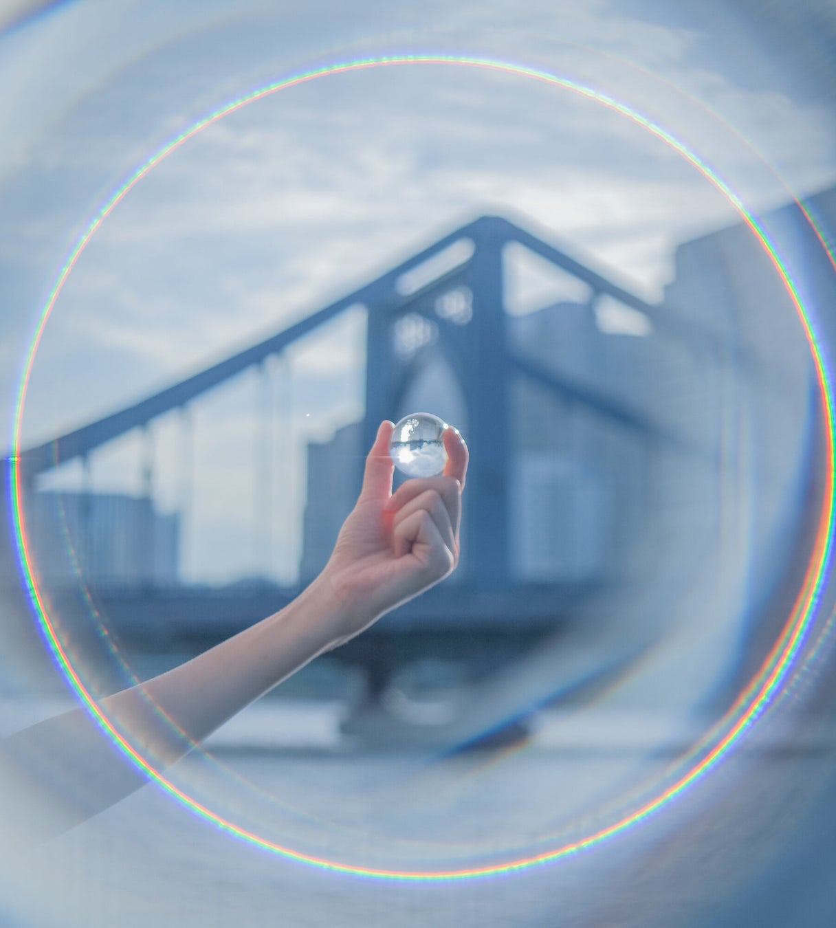 人工物などの余計なものをぼかしたい時にも役立ちます。単調にぼかすのではなく、レインボーハロならではの不思議な渦巻き効果を活かしてクリエイティブにぼかすことができます。