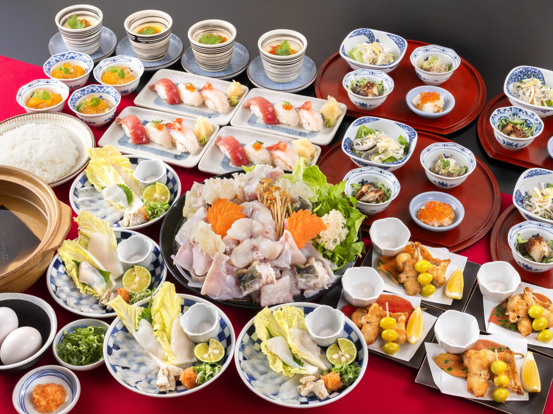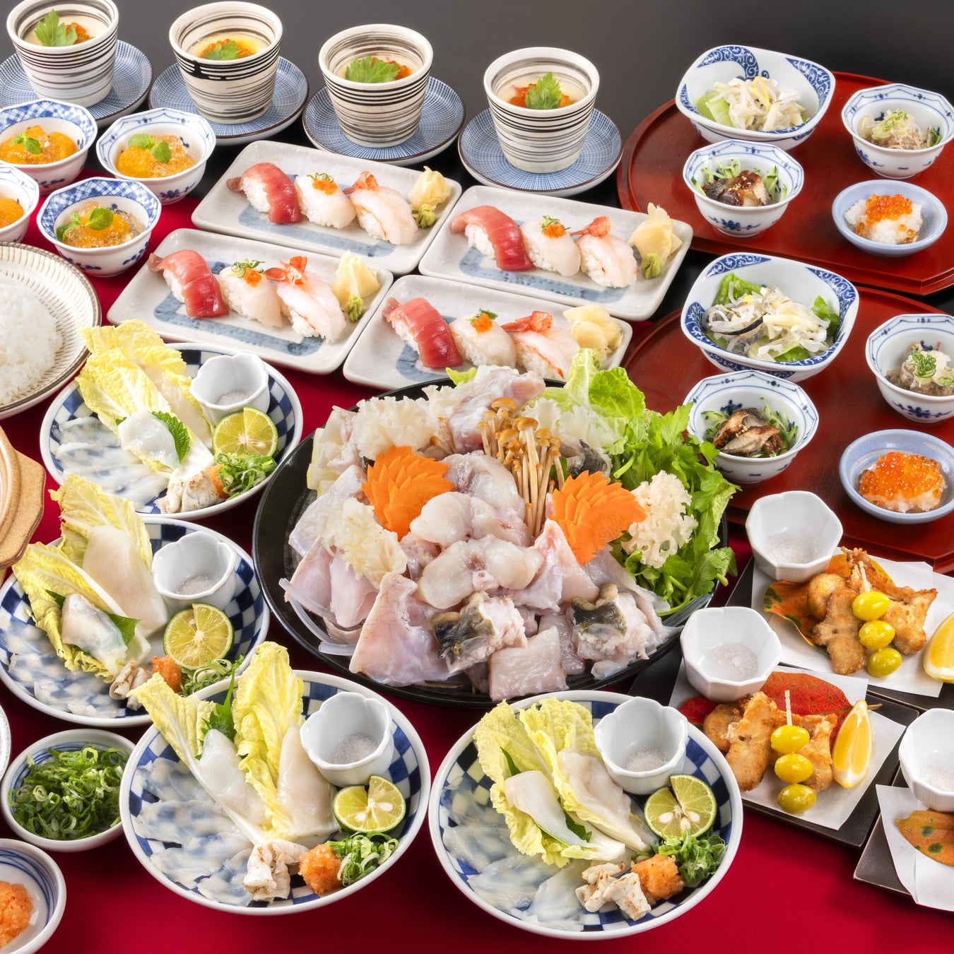 当店が誇る職人の技と、厳選された食材の味わいを存分にお楽しみください。とらふぐの様々な調理法と、特上寿司の組み合わせで、特別な宴会の思い出作りをお手伝いいたします。