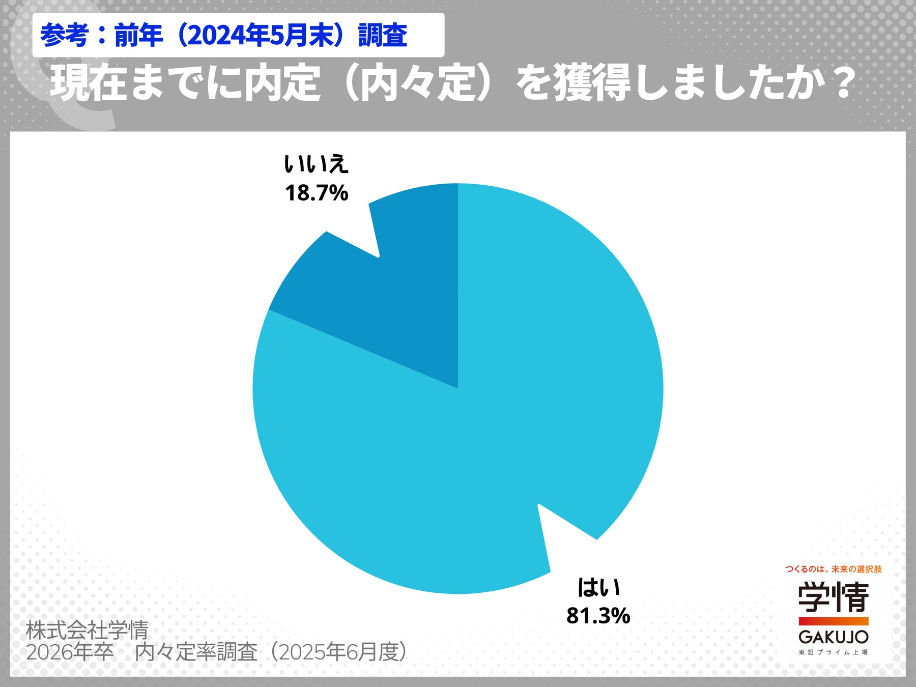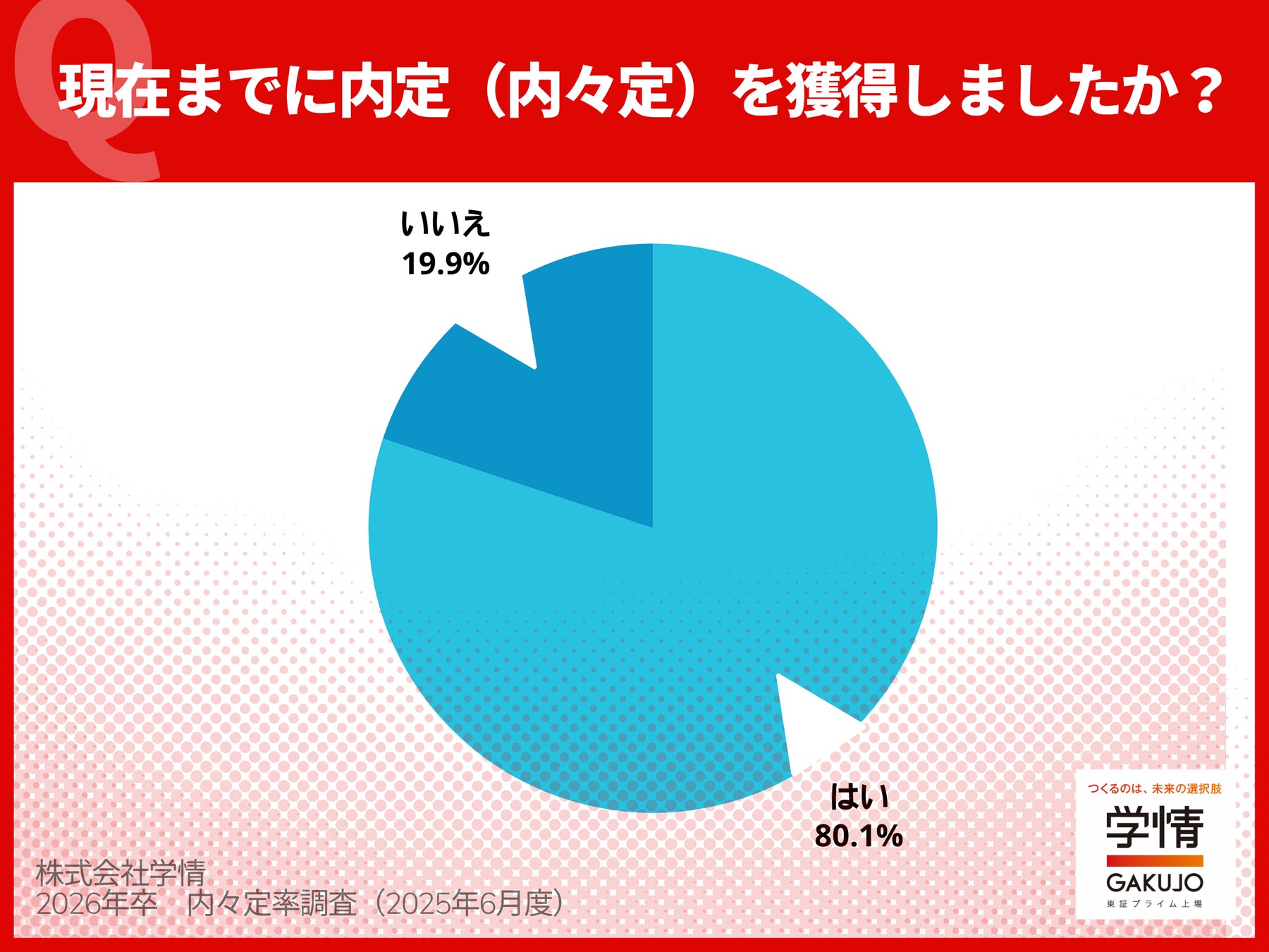 株式会社学情(本社:東京都中央区)は、2026年3月卒業(修了)予定の大学生・大学院生を対象に、最新の「内々定の獲得状況」についてインターネットアンケートを実施しました。