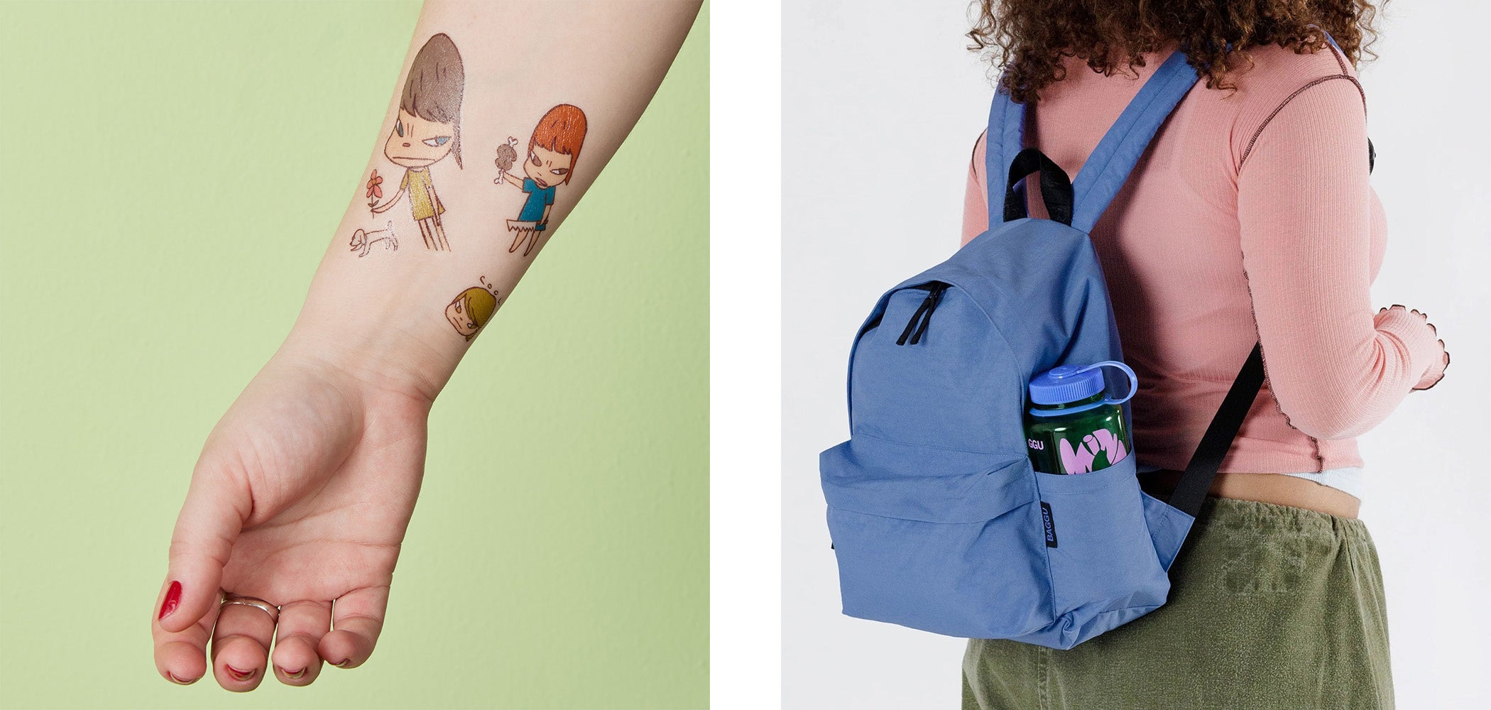 MoMAに作品が収蔵されている日本人アーティスト、奈良美智の作品があしらわれたテンポラリータトゥー。奈良の作品は、大きな目をした感情豊かなキャラクターを描いた独特のスタイルで知られており、このタトゥーシートにもそんなキャラクターがたくさん登場します。誕生日パーティーや食事会など、幅広いシーンで楽しめます。