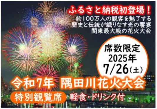 また、隅田川花火大会の特別観覧席がふるさと納税のお礼の品として提供されるのは初めてです。