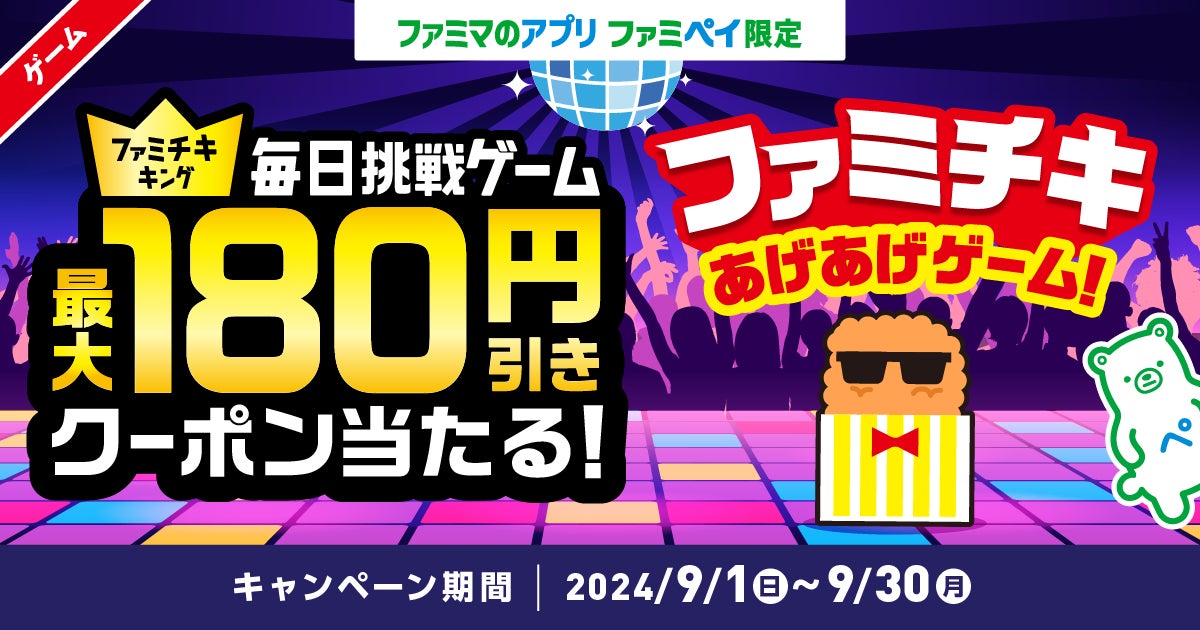ファミペイの「毎日挑戦ゲーム」が期間限定でファミチキバージョンになります。通常のファミマポイント景品に加えて、ファミチキ割引クーポンが当たるチャンス!